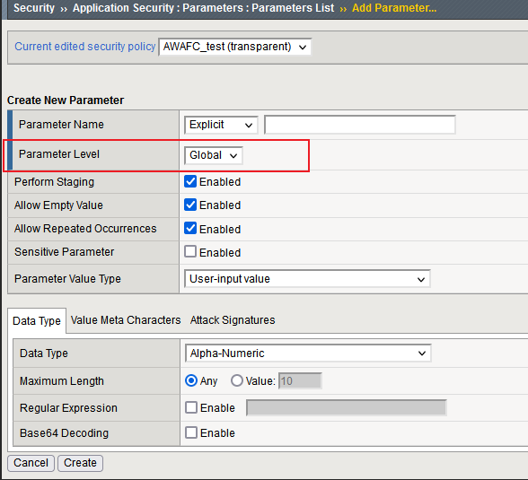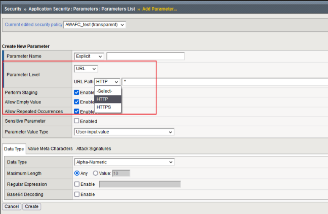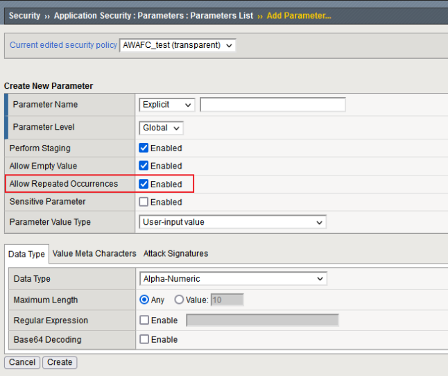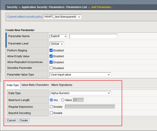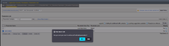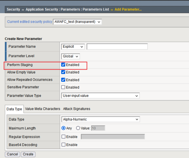 当勾选上之后,AWAF将将整个参数置为Staging的状态,AWAF将不会Block触发了违规的请求,即使整个Policy是Blocking的状态