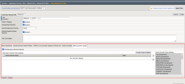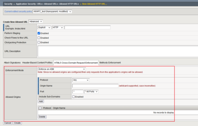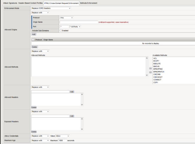 | A6 | Security Misconfiguration | Attack Signatures DAST integration Allowed Methods HTML5 Cross-Domain Request Enforcement |