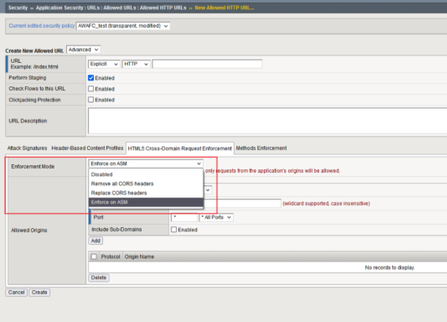 Verify Origin:The system will block requests without a valid Origin header. A CSRF request has no Origin header or the Origin header value is not an allowed origin. This enforcement option is suitable for protecting an AJAX request of an application, because AJAX requests always contain an Origin header. JavaScript injection is not done if all protected URLs are configured with Verify Origin.---对于没有Origin或者Orgin头不是被允许的请求,将会被Block。该类型适用于应用程序的AJAX请求。使用该功能将不需要JS