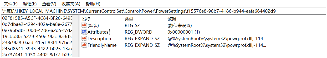 在上方的输入框中输入\HKEY_LOCAL_MACHINE\SYSTEM\CurrentControlSet\Control\Power\PowerSettings\f15576e8-98b7-4186-b944-eafa664402d9