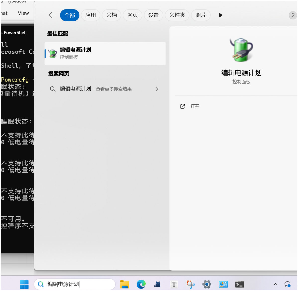 直接在系统下方任务栏的搜索框中搜索编辑电源计划
