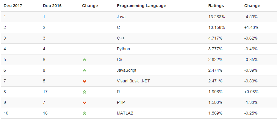 最新的TIOBE排行榜,Python占据第四, Python崇尚优美、清晰、简单,是一个优秀并广泛使用的语言。