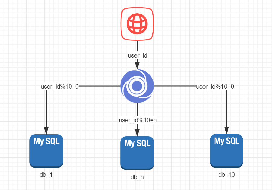 根据user_name查询时,先通过user_name_code生成函数生成user_name_code再对其取模路由到对应的分库或分表。id生成常用snowflake算法。