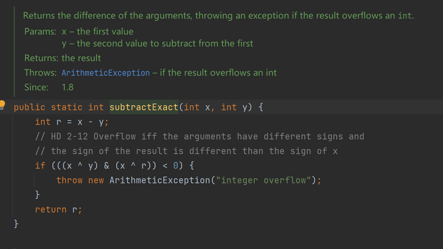 可以通过java.lang.math里的addExact和subtractExtract来判断是否结果溢出, 如果溢出了会抛出异常