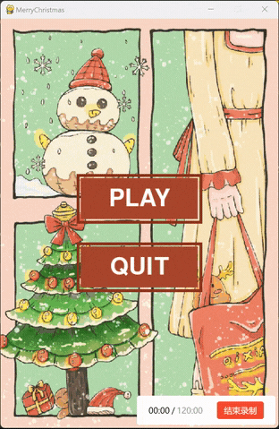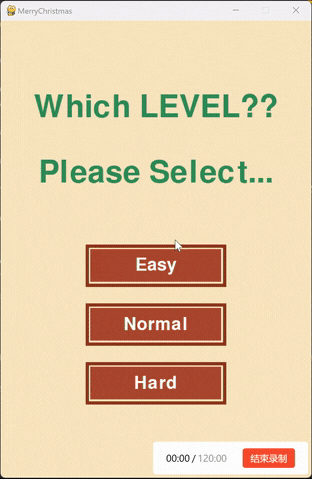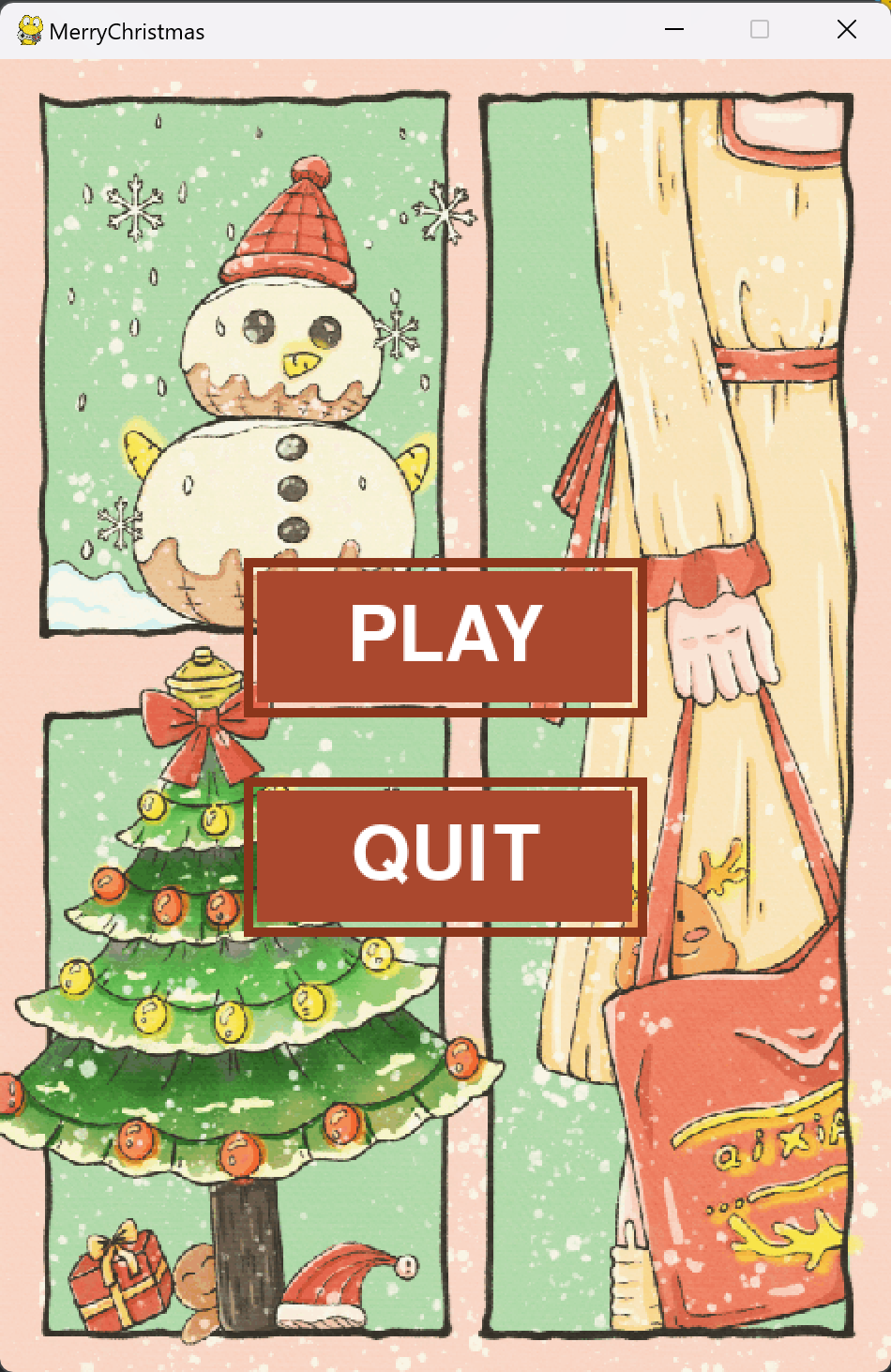 主色调:在游戏的设计中,我选择了明亮的色调,如淡黄色,水红色和鲜艳的绿色,以此渲染“圣诞节”的氛围,并增强游戏的视觉吸引力。这些颜色不仅提升了游戏的趣味性,也让游戏界面看起来更加生动活泼。
