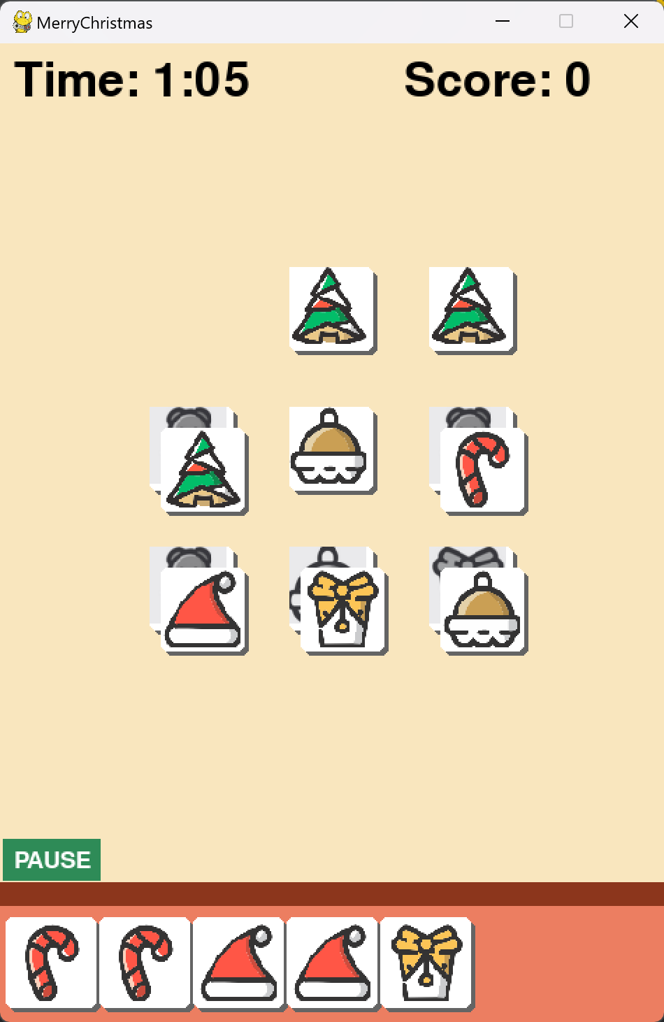 卡片设计:游戏中的卡片采用了圆角矩形设计,并加入了3D效果,使其看起来更具立体感和现代感。每种类型的卡片都有独特的图案和色彩,我特地找的很可爱的圣诞节图标,便于玩家区分和匹配。