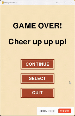 3.设置倒计时机制,时间结束或框满时游戏失败: 倒计时90秒,收集框上限为8,Hard模式上限为7。