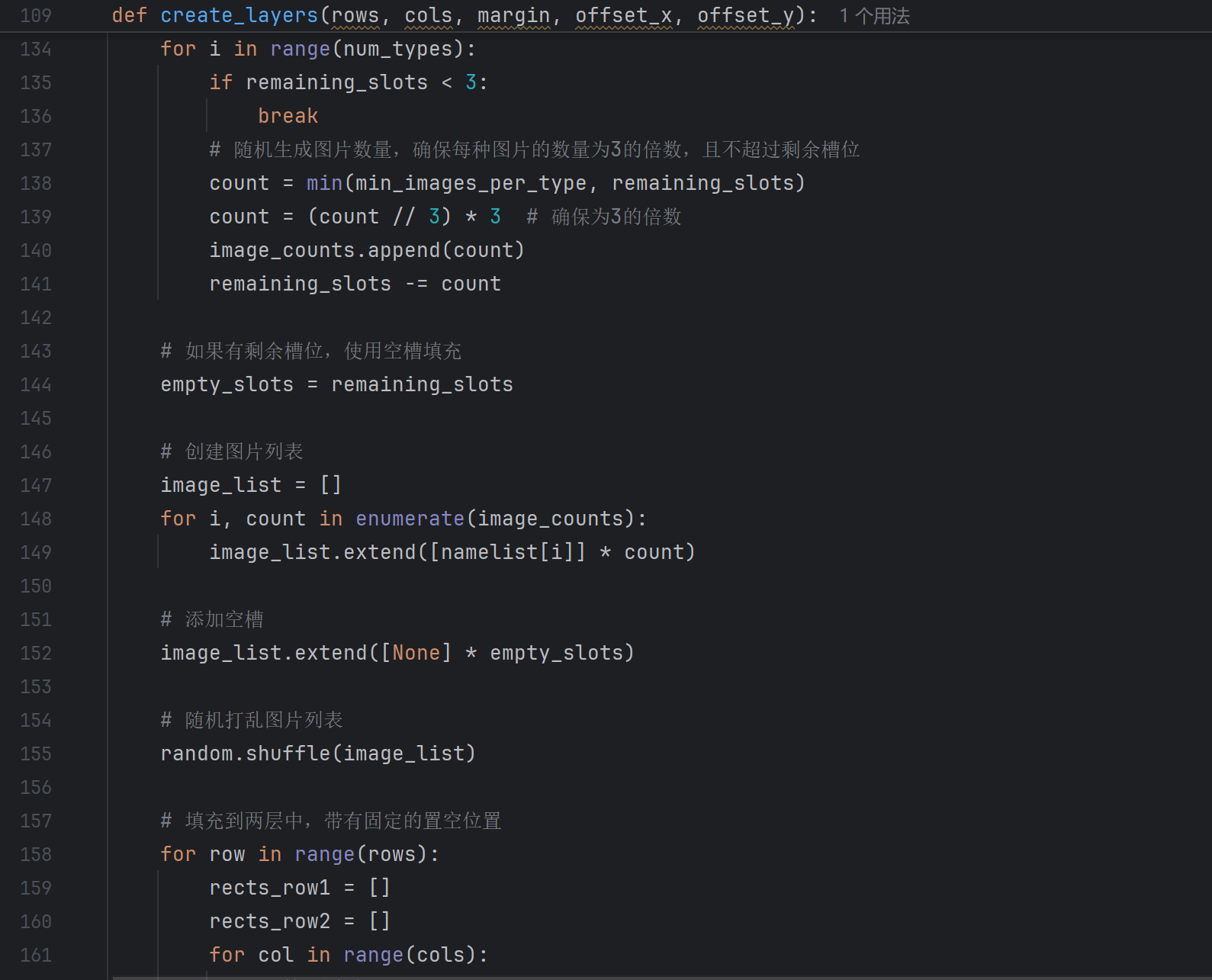 - 这个算法用于在游戏网格中随机分布图像,并确保每种图像的数量是3的倍数,同时处理空白插槽。