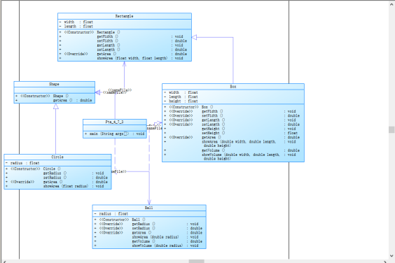 Shape类时Circle类 和Rectangle类的父类,Circle类是Ball类的父类,Rectangle类是Box类的父类