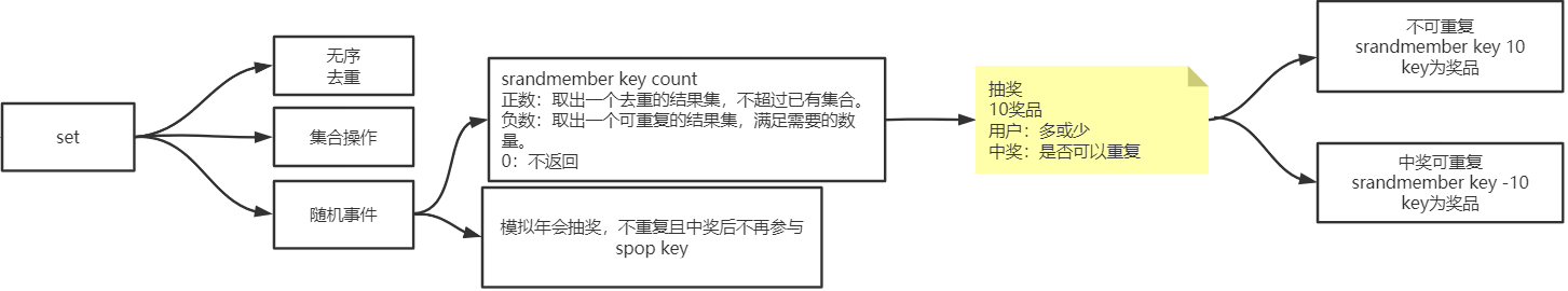 - 正数(小于元素个数):在已有集合中返回count个去重的结果。