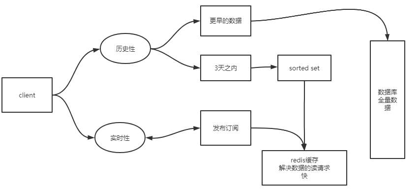 - 三天之内的数据:zset(sorted set),把时间作为记录的分值,消息作为存的元素。
