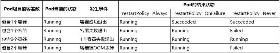 restartPolicy: [Always | Never | OnFailure]# Pod的重启策略: Always表示不管以何种方式终止运行,kubelet都将重启;OnFailure表示只有Pod以非0退出码退出才重启; Nerver表示不再重启该Pod