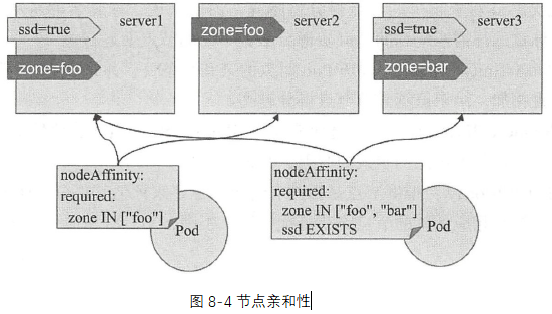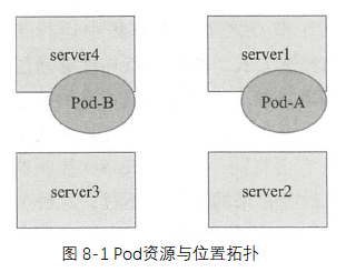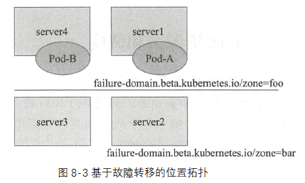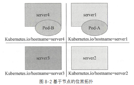 如果以基于各节点的 kubernetes.io/hostname标签作为评判标准,那么很显然,“同一位置”意味着同一个节点,不同节点即不同的位置,如图 8-2所示。