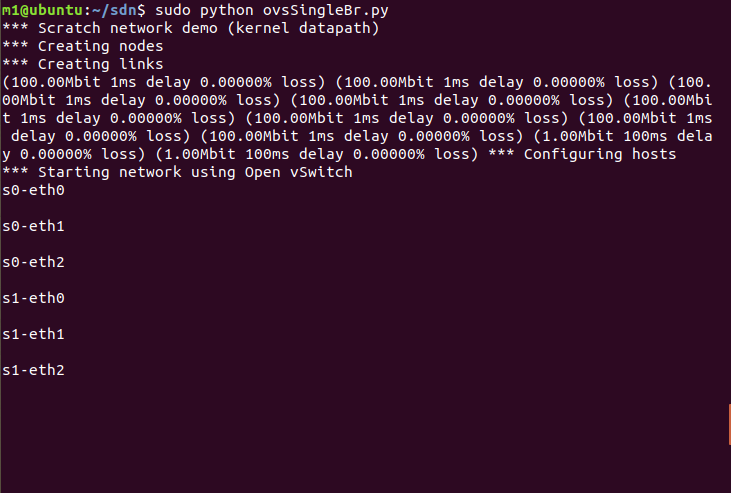 在本实验中,使用 Mininet 基于 Python 的脚本,调用“ovs-vsctl”命令直接控制Open vSwitch。