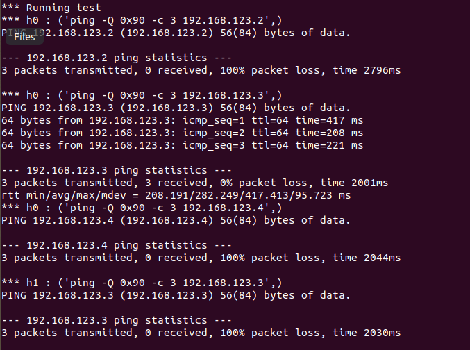 h0.cmdPrint( 'ping -Q 0x30 -c 3 ' + h3.IP() )