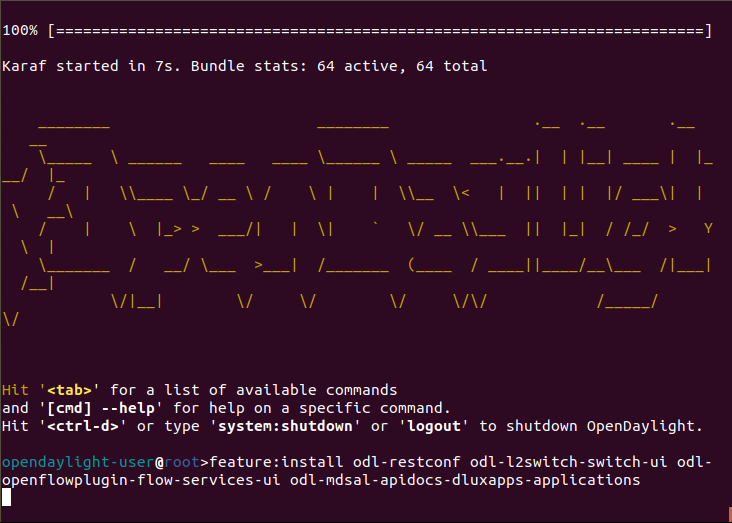 $ feature:install odl-restconf odl-l2switch-switch-ui odl-openflowplugin-flow-servicesui odl-mdsal-apidocs odl-dluxapps-applications