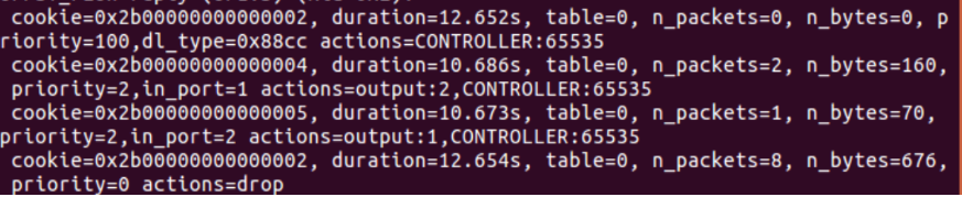 用 OVS 命令查看交换机中确实存在相应版本的流表,cookie、priority 等信息可以上面的抓包能够对应上。