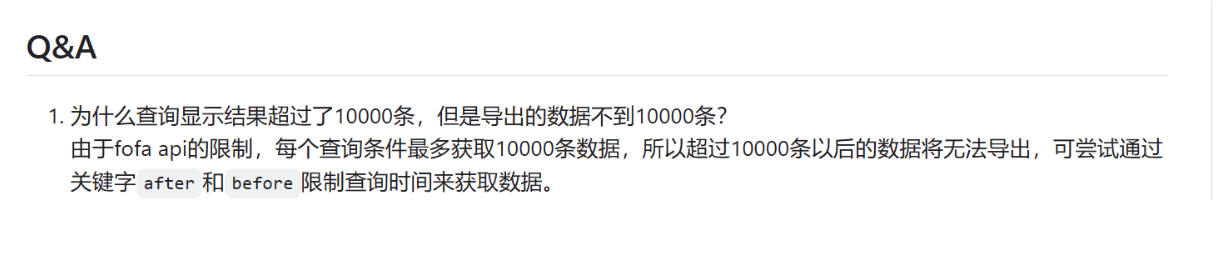 这两个语法都是争对时间,比如我可以先搜寻before2023-01-01号的ip,如果在1w左右,我就可以直接导一份出来,然后又不断尝试2023-01-01到多久又有1w个ip出来,这里就可以使用after+before这个语句,按道理来说几十w的ip也就半个小时,