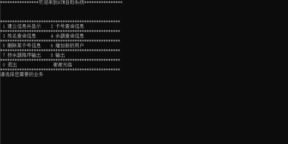 printf("请选择您需要的业务:\n"); //银行业务菜单