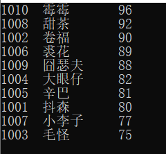- 屏幕上正确输出了按分数由高到底排序的学生信息