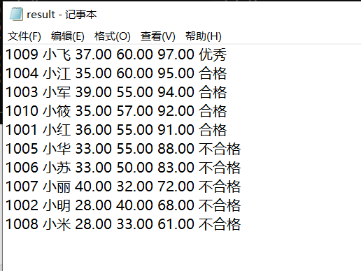 - 屏幕上是否正确输出了按分数由高→低排序的信息