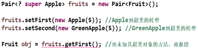 只能get/不能set,编译器只能保证出来的类型,但不保证放入的对象是什么类型
