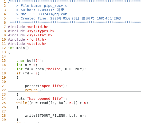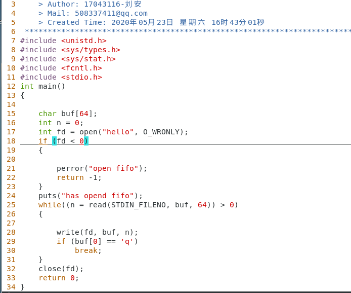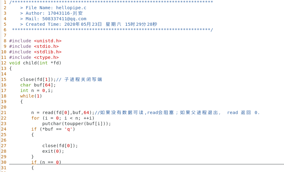 编写文件 vim hellopipe.c