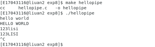 父进程 fork 出一个子进程,通过无名管道向子进程发送字符,子进程收到数据后将字符串中的 小写字符转换成大写并输出。