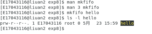 查看文件属性 当使用 mkfifo 创建 hello 文件后,查看文件信息如下