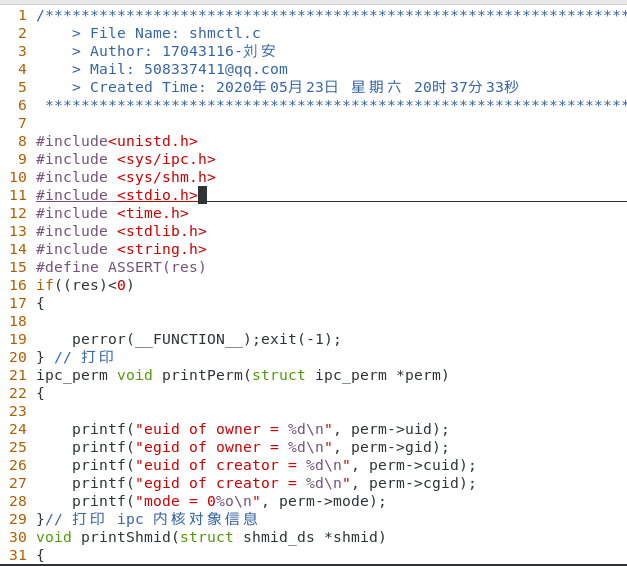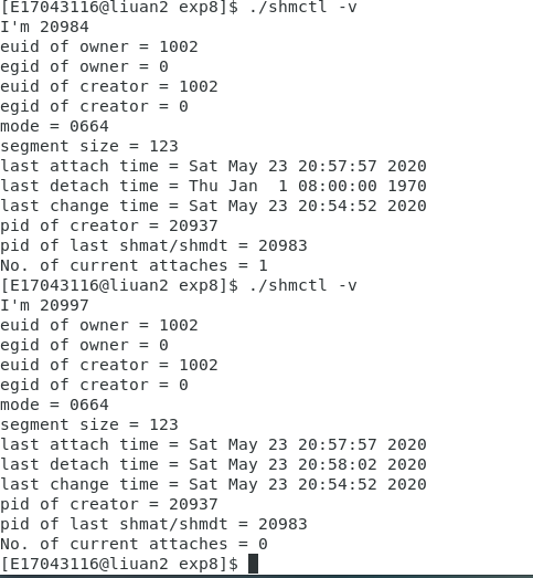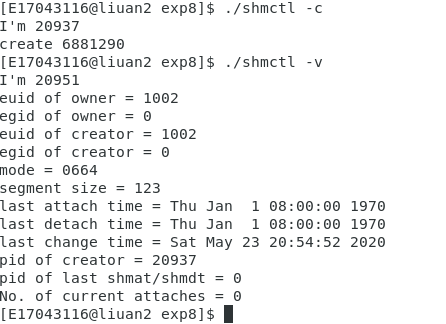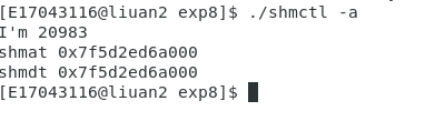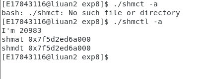 先在另一个终端执行 ./shmctl -a ,然后在当前终端执行 ./shmctl -v ,最后在./shmtcl -a 运行结束后执行./shmtcl -v
