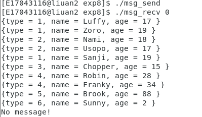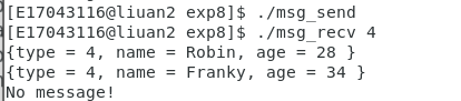 先运行 ./msg_send ,再运行 ./msg_recv 。