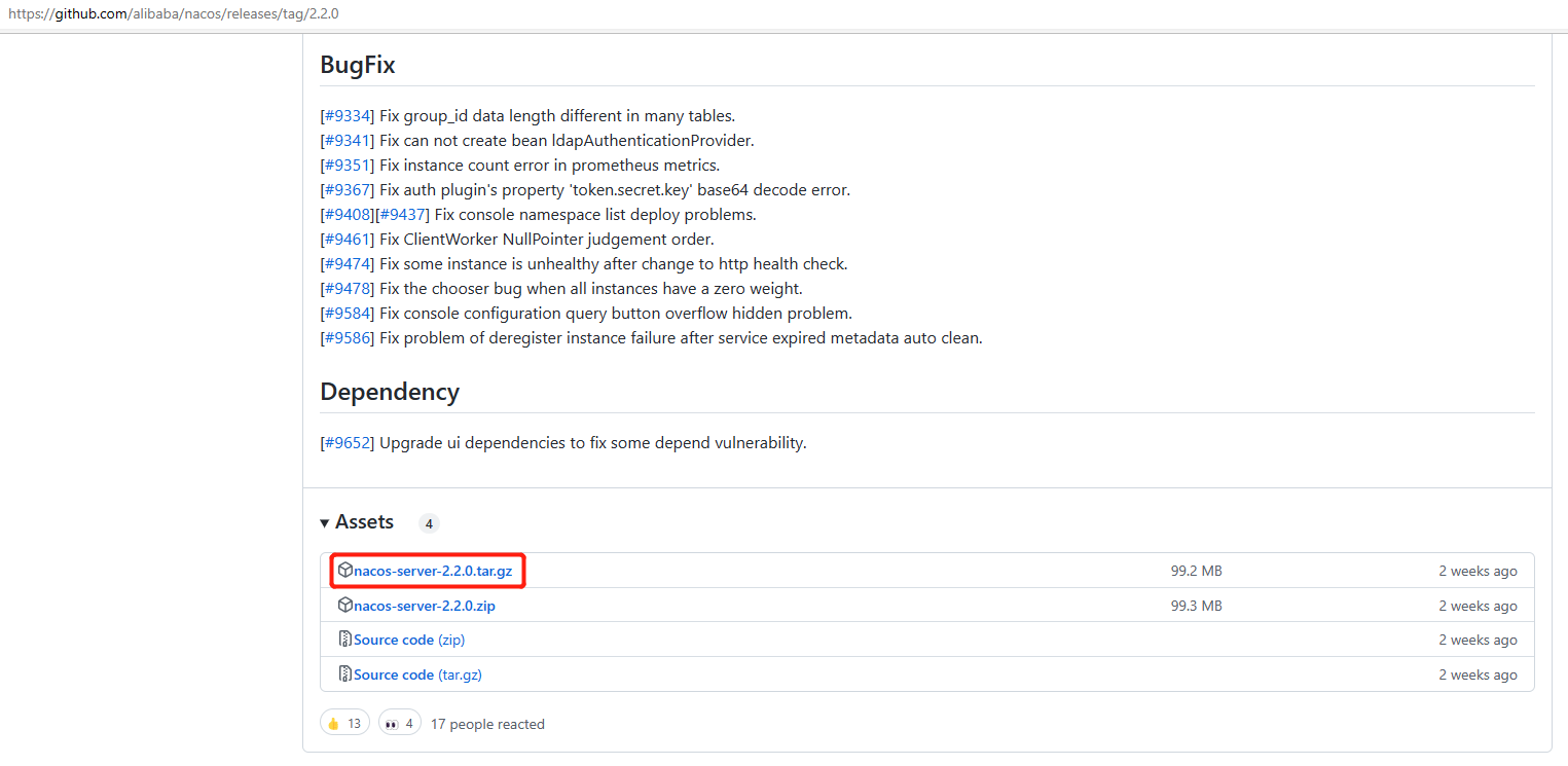 wget https://github.com/alibaba/nacos/releases/download/2.2.0/nacos-server-2.2.0.tar.gz