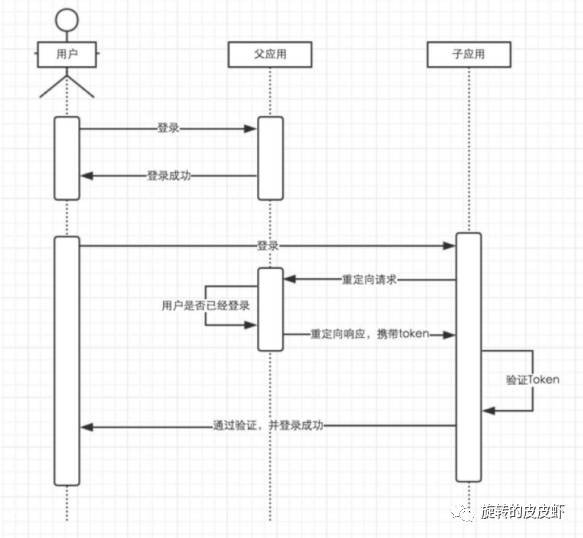 父应用提供一个GET方式的登录接口,用户通过子应用重定向连接的方式访问这个接口,如果用户还没有登录,则返回一个的登录页面,用户输入账号密码进行登录。如果用户已经登录了,则生成加密的Token,并且重定向到子应用提供的验证Token的接口,通过解密和校验之后,子应用登录当前用户。