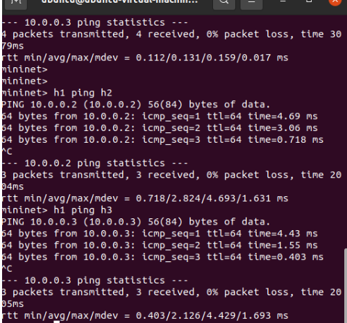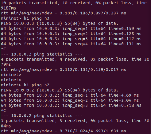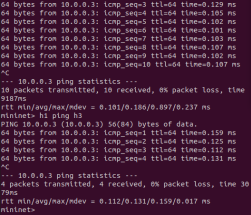 - 通过验证POX的forwarding.hub和forwarding.l2_learning模块,初步掌握POX控制器的使用方法;