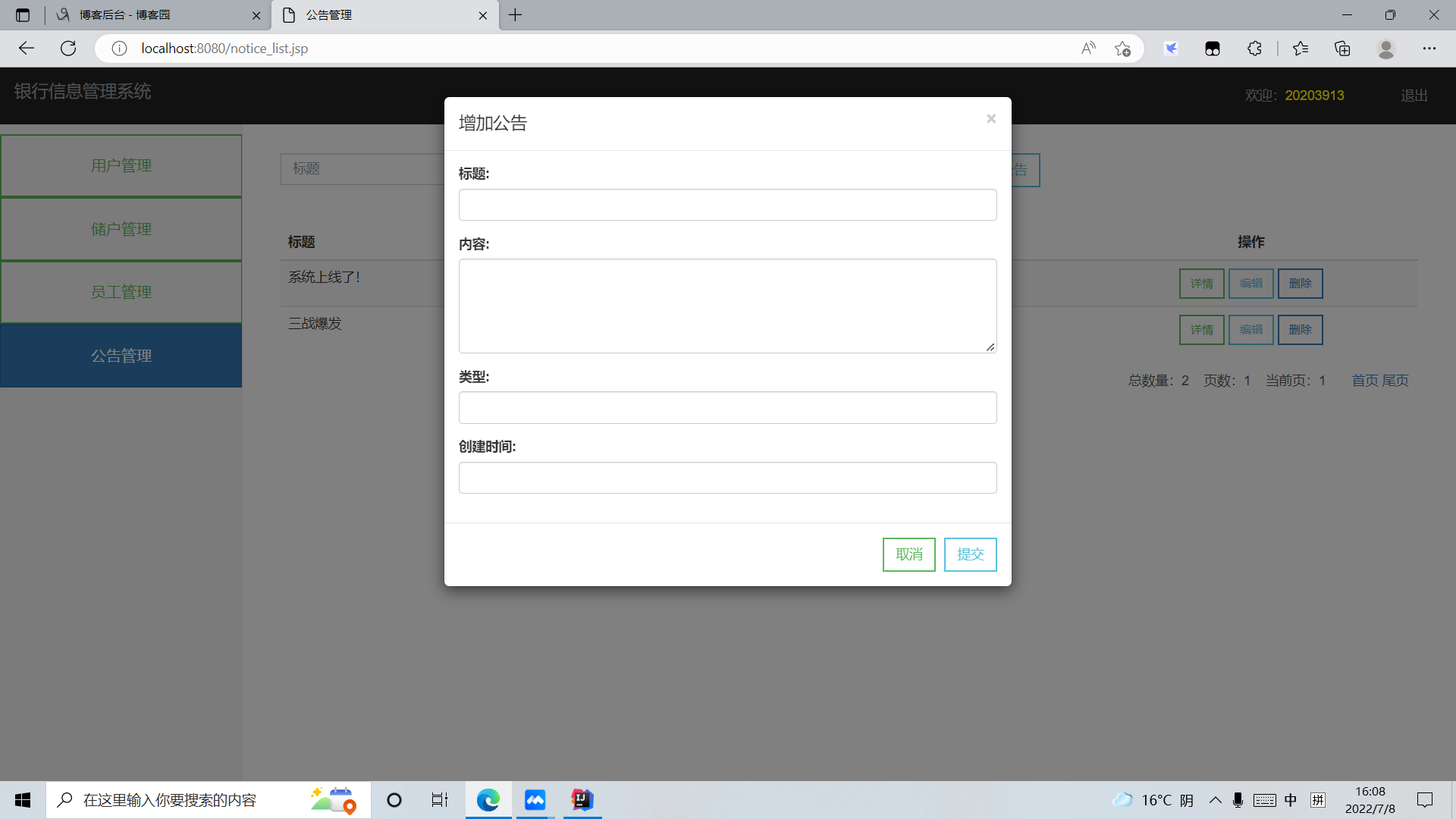 本周继续加强了对Javawweb的了解,也尝试做了一下网络大赛的第三部分,效果不容乐观,不过还是有长进,本周继续完成了数据库小学期实验,我选题是银行信息管理系统,本次重点加强了增删改查功能,尤其是查找,界面套取和注册登录连接数据库已经非常熟练,上图见证,马上数据结构小学期也开始了。转眼间实训已过去一段时间,之前的兴奋、喜悦如今已经让我熟悉,在实训的每一天都会让我有成为一名真正的财富者拥有的冲动。也许,在这期间不一定会让一个人有着翻天覆地的变化,但变化就是这样一点一点产生的。通过这一期的实训,虽然倍感折磨,但是收获却是很大的,学习中我不但有了学习成果的喜悦,而且自己也日渐成熟,有种说不出的喜悦。在实训的过程中,我深深的体会到了自己在专业知识方面的欠缺和不足,也意识到了自己作为计算机软件专业的学生,要想在以后的职业中崭露头角,除了要有过硬的理论知识,健康的体魄之外,还必须具备良好的心理素质,是自己在以后的途中无论经历什么样的困难,都立于不败之地。通过实训老师的课堂讲解与企业文化标准的培训,使我加深了对自己专业的认识,从而确定自己以后的努力方向,要想在短暂的实训时间内尽多的学到东西,就需要我们跟老师或同学进行良好的沟通,加深彼此的了解,只有我们跟老师多沟通,让老师更了解我们,才能更真切的对我们进行培训工作。由此,团队的文化“共享”就在生活中慢慢形成了。