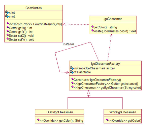 设计一个围棋软件,在系统中只存在一个白棋对象和一个黑棋对象,但是它们可以在棋盘的不同位置显示多次。