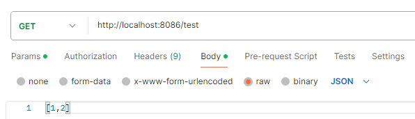 @RequestMapping("/test") public String test(@RequestBody Integer[] ids){ String result=String.valueOf(Arrays.toString(ids)); return result; }