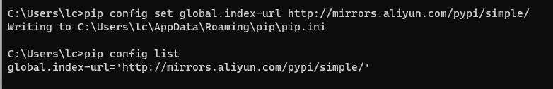 镜像配置命令:>pip config set global.index-url http://mirrors.aliyun.com/pypi/simple/