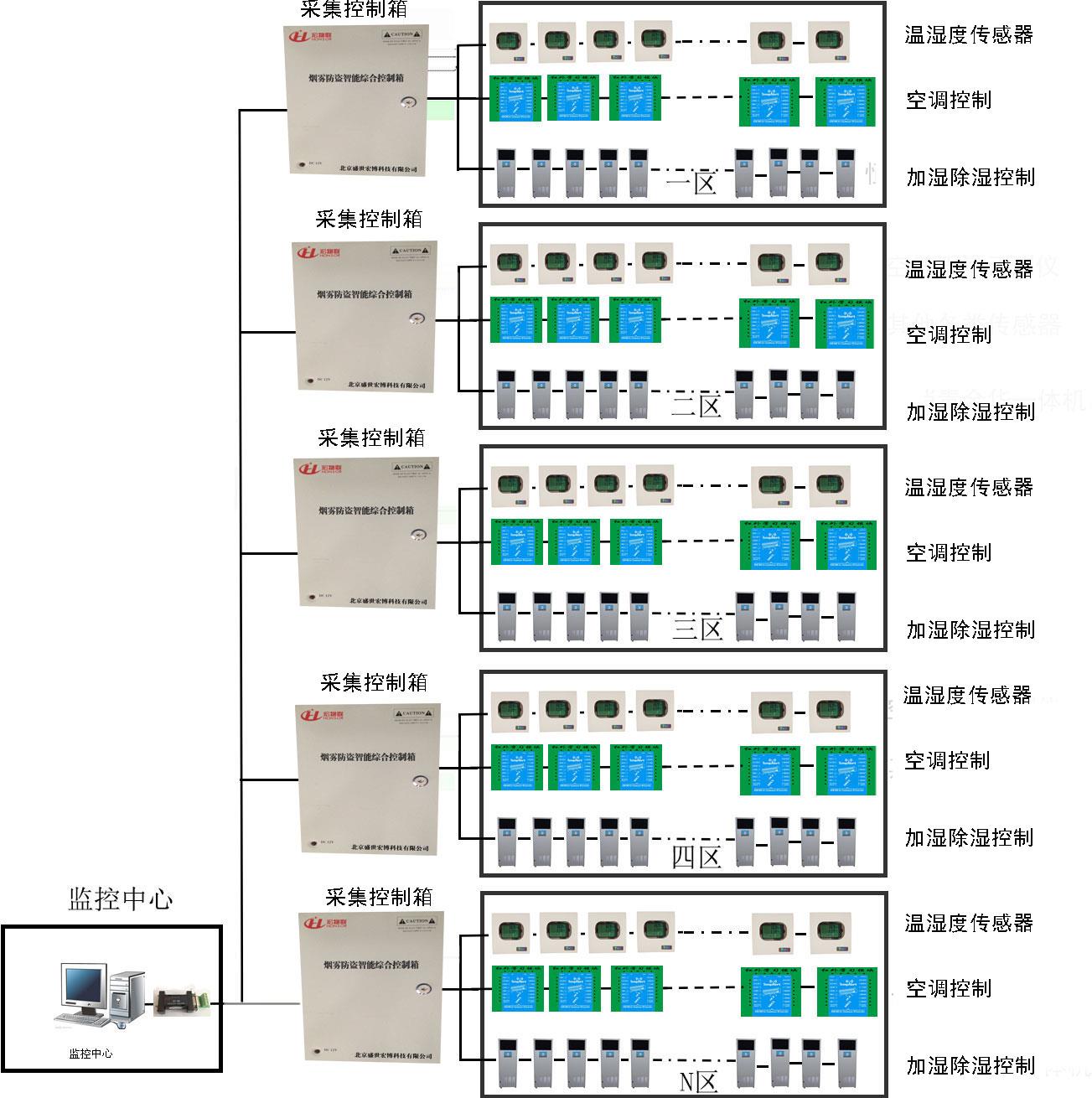 档案室环境监测系统主要由温湿度监控、漏水监控、空调监控、新风系统监控、抽湿加湿、UPS监控、电量监控、红外监控、烟雾监控、玻璃监控以及门禁监控组成。