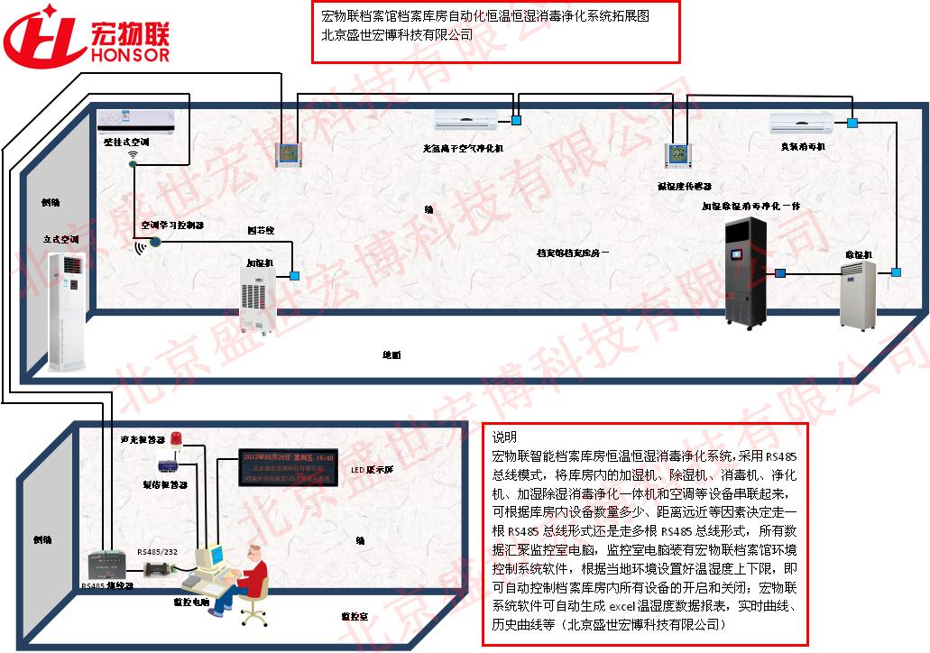 1、实现方式:档案馆实时监控主机+物联采集控制模块+多功用自动。