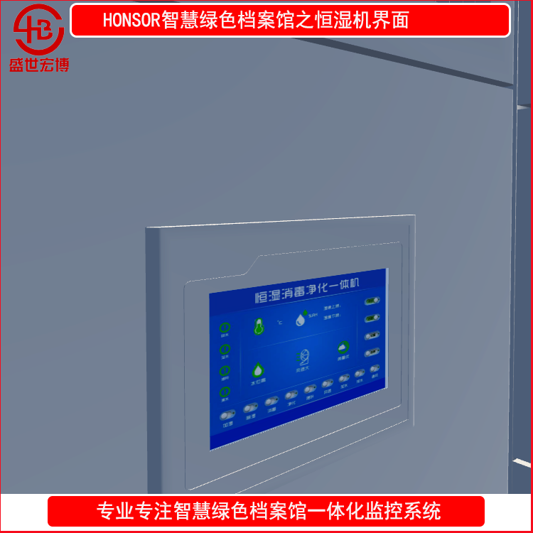 5.抽湿加湿监控档案室内重要部位的湿度情况,如对各类空调进出水管沿线的漏水检测以及漏水的水位检测,记录湿度曲线方便管理员查询,一旦发现湿度越限即刻发出警报,提醒管理人员及时调整空调的工作设置值或调整机房内的设备分布情况。