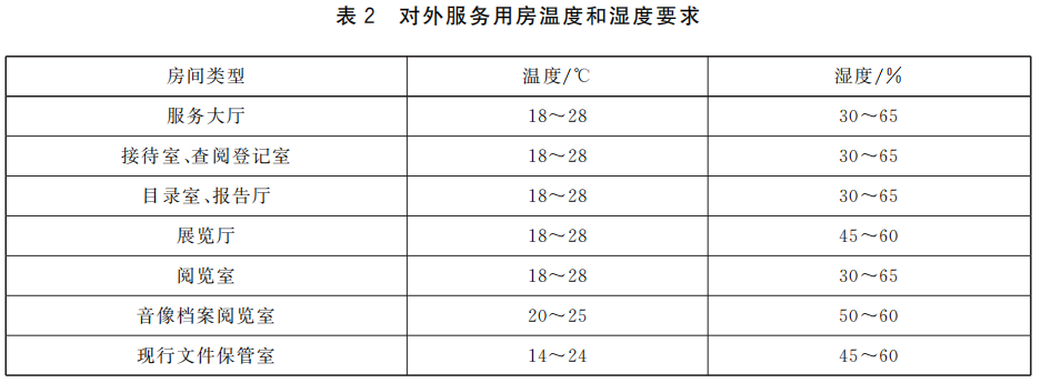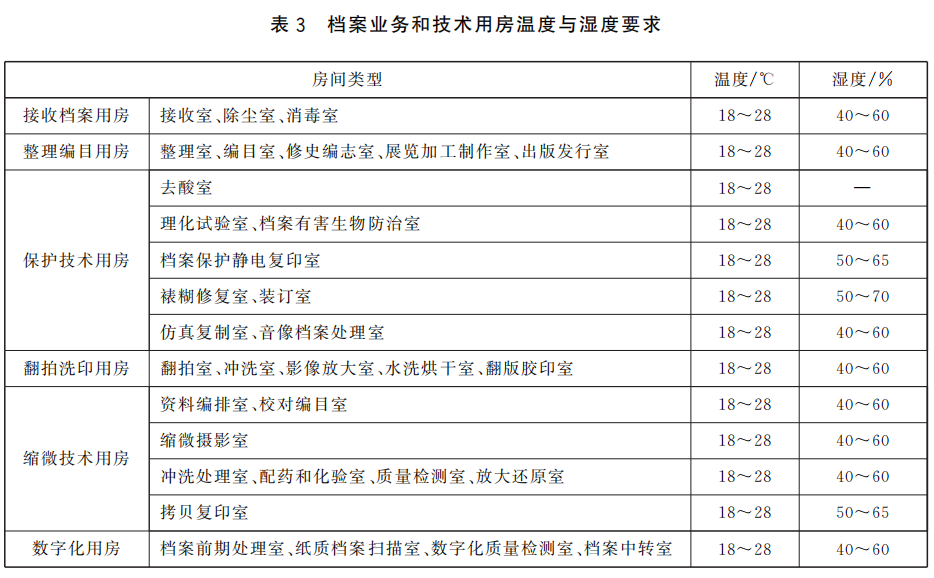5.1.4 档案业务和技术用房温度与湿度应符合表3的要求。