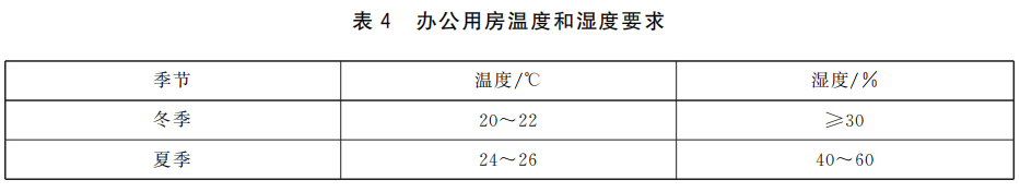 5.1.5 办公用房温度和湿度应符合表4的要求。