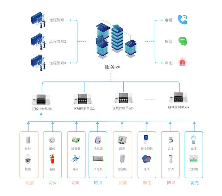主动安全防护:集成火灾预警、入侵检测、漏水监测、防虫鼠等多维度防护,消除物理、生物、化学等风险源。