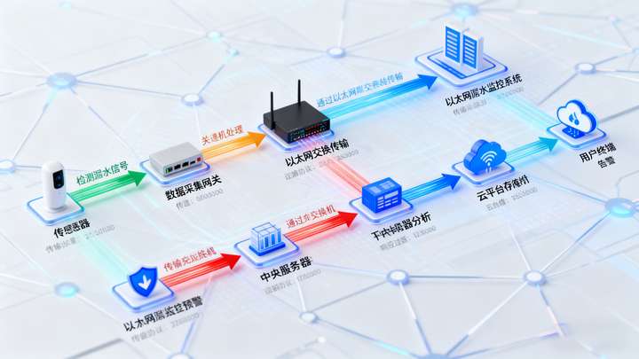 以太网漏水检测系统通过 “分层采集 - 协议传输 - 智能处理” 实现漏水监控闭环,具体工作流程如下: