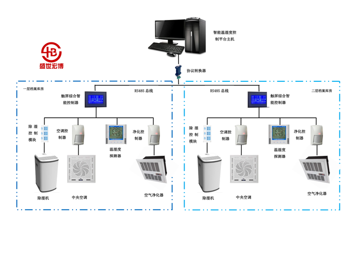 温湿度监测:部署高精度传感器(如盛世宏博H-THNSJ0A型),实时采集数据并联动空调、除湿机、加湿机,维持恒温恒湿环境。