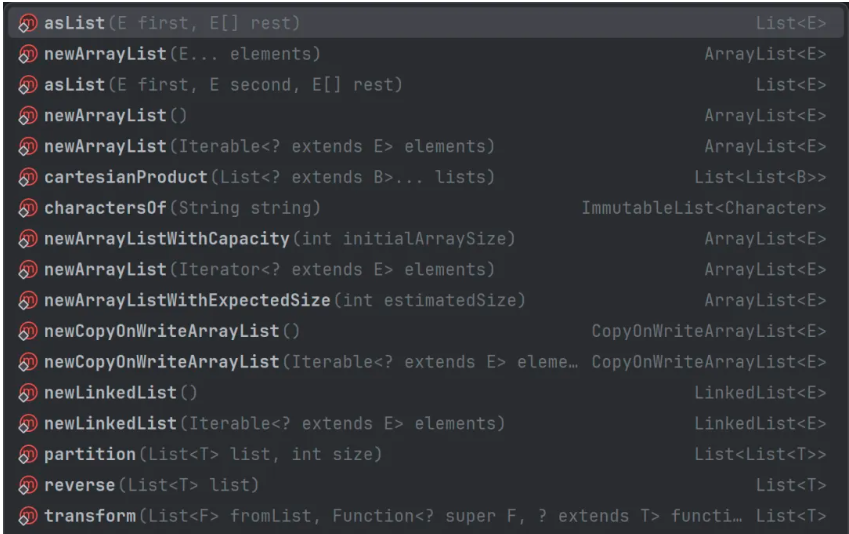 如果你引入了com.google.guava的依赖,你会获得许多有用的小工具。这里推荐一个位于com.google.common.collect包下的集合工具:Lists