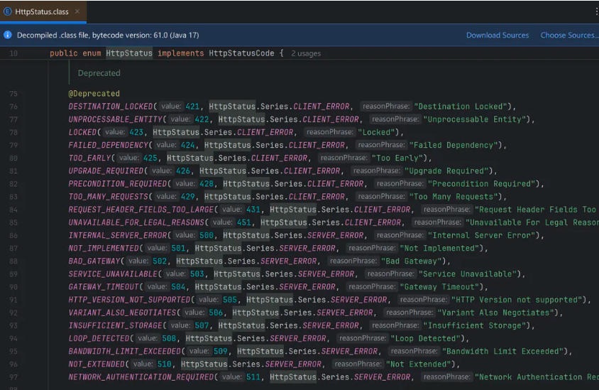 实际上,org.springframework.http包下的HttpStatus枚举或org.apache.http包下的HttpStatus接口已经为我们定义了常用的HTTP返回代码。我们可以直接使用它们,确实不需要重新定义。