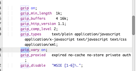 gzip_types text/plain application/javascript application/x-javascript text/javascript text/css application/xml;