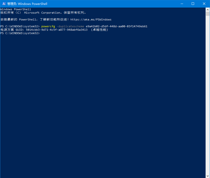 powercfg -duplicatescheme e9a42b02-d5df-448d-aa00-03f14749eb61